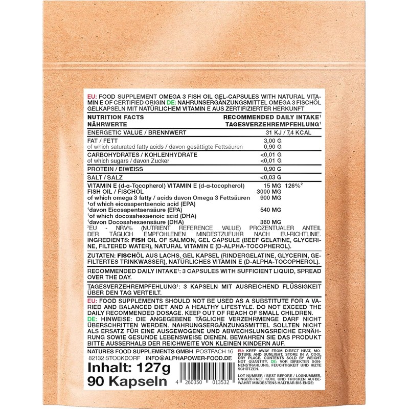 - ALPHAPOWER FOOD, Deep Ocean Omega 3 Capsules 3000 mg Fish Oil High Dose (in Triglyceride Form) I EPA 540 mg + 360 mg DHA per Recommendation I Laboratory Tested from Sustainable Fishing + Natural Vitamin E