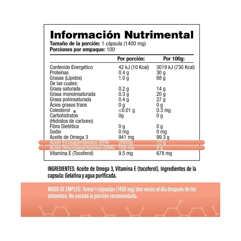 Omega 3 con EPA y DHA de Aceite de pescado - 100 Cápsulas, Enriquecido con vitamina E - Ácidos Grasos Esenciales - Sin sabor