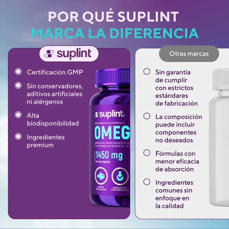 Omega 3 de Aceite de Salmón 3420 mg – Alto Contenido de EPA, DHA y Vitamina E – Suplemento Natural para Corazón, Cerebro y Articulaciones – Sin Gluten, Sin OGM – 60 Cápsulas – SUPLINT