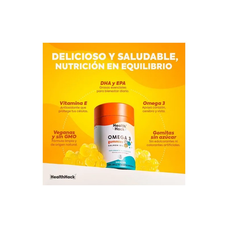 Omega 3 En Gomitas Dha 60 Gummies Para 1 Mes Health Hack Sabor Piña
