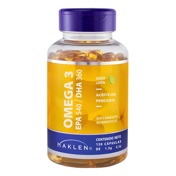 Nutre tu cuerpo y tu mente con la esencia de la vitalidad marina! Descubre el poder del Omega 3 | EPA 540 / DHA 360 de Maklen, un suplemento alimenticio esencial presentado en un frasco con 120 cápsulas sin sabor, diseñado para brindarte un soporte integral para tu salud diaria. Con una concentración equilibrada de 540 mg de EPA (Ácido Eicosapentaenoico) y 360 mg de DHA (Ácido Docosahexaenoico) por porción, esta fórmula te ofrece los ácidos grasos esenciales que tu cuerpo necesita para funcionar de manera óptima.