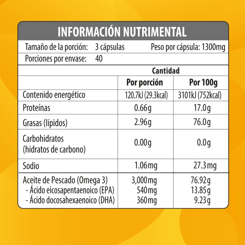 IMPORTANTE: Este producto es un suplemento alimenticio, no un medicamento y no está destinado a diagnosticar, tratar, curar o prevenir ninguna enfermedad. Las afirmaciones sobre sus beneficios se basan en la evidencia científica que respalda a los ácidos grasos Omega 3 y no han sido evaluadas por agencias reguladoras de medicamentos. Consulte SIEMPRE a un profesional de la salud antes de iniciar cualquier suplemento, especialmente si está embarazada, amamantando, tomando medicamentos (particularmente anticoagulantes, ya que los Omega 3 pueden tener un efecto antiplaquetario) o tiene alguna condición médica preexistente. Mantenga fuera del alcance de los niños.