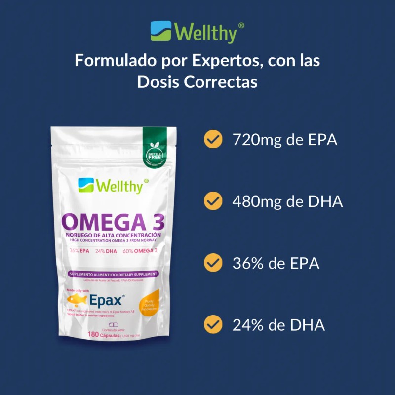 Omega 3 EPAX Wellthy | 180 Cápsulas | 1080mg EPA + 720mg DHA | Salud Cardiova...
