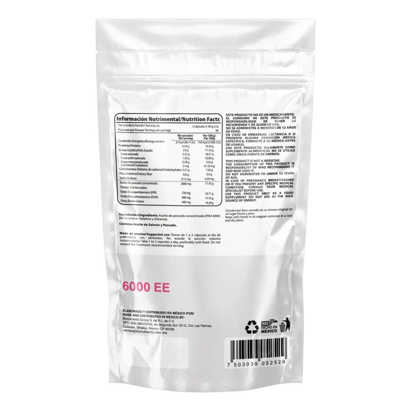 ✔️ 1080 mg de EPA y 720 mg de DHA por porción