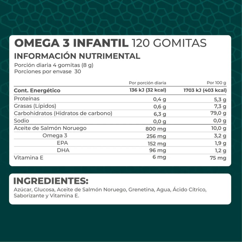 Las gomitas de Omega 3 infantil PRONAT son un suplemento ideal para el desarrollo saludable de los niños. Contienen ácidos grasos esenciales DHA y EPA, que apoyan la función cerebral, la salud visual y el sistema nervioso.