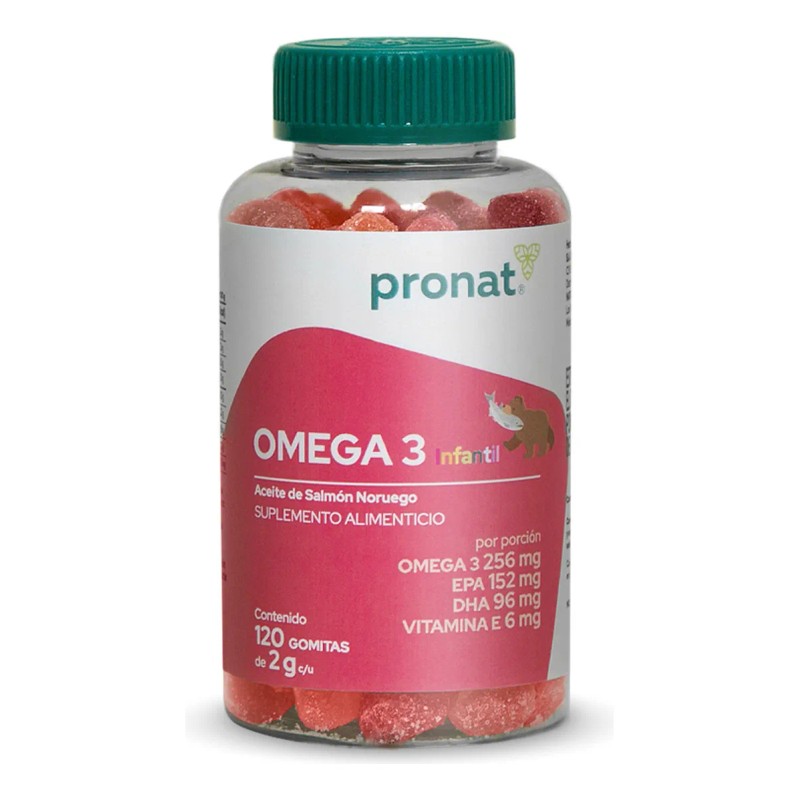 PRONAT Omega 3 Infantil 🧠 | 120 Gomitas | Apoya Desarrollo Cerebral y Visual | Sabor Delicioso