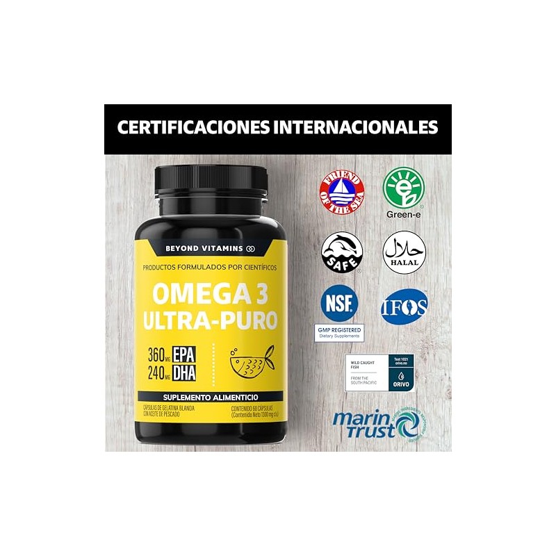 Omega 3 Premium 1000mg Aceite de Pescado como TG Alta Pureza y Concentracin con Certificados Internacionales Suplemento Alimenticio Beyond...