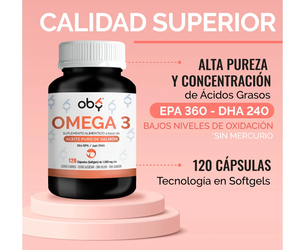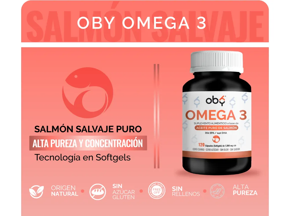 Omega 3 Premium 1300mg 120 Capsulas | Aceite De Salmon Salvaje Puro Con Alto Epa Y Dha | Suplemento Alimenticio Oby Vitaminas Omega 3 Capsulas Tecnologia Sin Sabor Y Sin Olor
