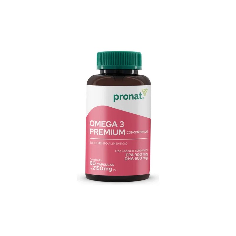 PRONAT OMEGA 3 PREMIUM CONCENTRADO, SUPLEMENTO ALIMENTICIO, 60 CÁPSULAS SUPLEMENTO CON 900 MG DE EPA Y 600 MG DE DHA Y VITAMINA E