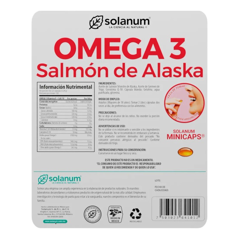 ¡Potencia tu bienestar con el súper combo de Omega 3 de Salmón de Alaska, Vitamina E y CoQ10! 🚀 Este frasco gigante de 240 cápsulas sin sabor 🚫👅 es tu aliado definitivo para una salud integral y duradera. Imagina que cada cápsula es un trío de héroes: el Omega 3 con su EPA y DHA fortalece tu corazón ❤️ y alimenta tu cerebro 🧠 (¡adiós a los olvidos y hola a la concentración! 🎯); la Vitamina E es tu escudo antioxidante que protege tus células del envejecimiento ✨; y la CoQ10 es la chispa que enciende tu energía celular y revitaliza cada parte de tu cuerpo 💪. Es la fórmula perfecta para mantenerte vital, protegido y con una mente clara, listo para enfrentar cualquier desafío. ¡Siente la diferencia de una nutrición superior con la pureza del salmón de Alaska! 🌟