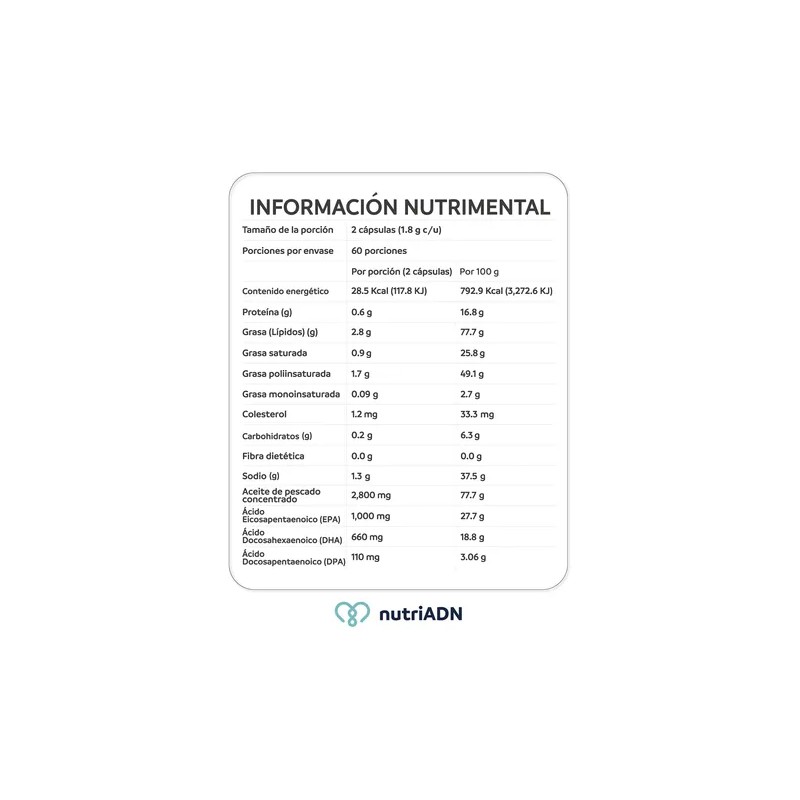 FÓRMULA COMPLETA: Incluye Omega-3 con EPA, DHA, DPA y Aceite de Pescado para un apoyo integral a tu bienestar diario, con 1000mg por porción.