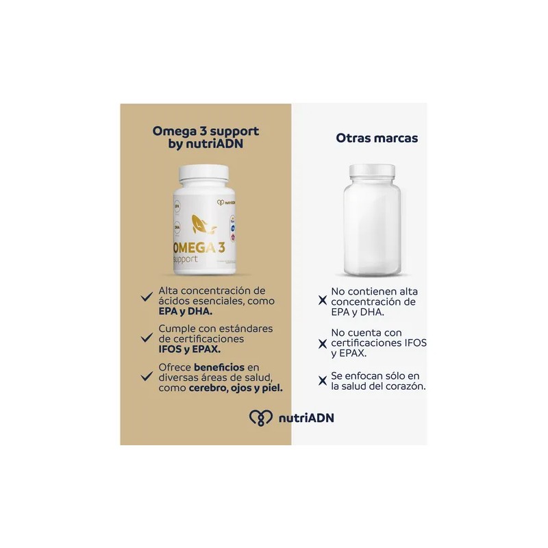 Omega 3 Support By Nutriadn es un suplemento nutricional de alta calidad que te ayudará a mantener una vida saludable. Con su fórmula especial de EPA y DHA, obtendrás todos los beneficios del omega 3 en cada porción. Este producto viene en un práctico envase de botella con 60 unidades de SoftGel, lo que te garantiza un suministro para un mes completo.