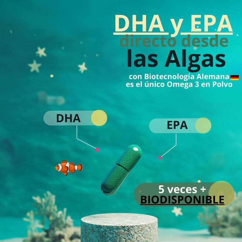 - 🪸 + 🧫 DHA AND EPA – GERMAN TECHNOLOGY AvailOM: Omega 3 Algae Ultra is made with raw materials from the German biotechnology company AvailOM. This algae powder technology is the newest on the market. Microalgae powder technology is superior to oils because it is absorbed faster because it does not require triglyceride hydrolysis, an extra step that all omegas in oil need before entering the cell. In addition, it is fused to a lysine molecule, a highly absorbable amino acid in the metabolism, this is one of the reasons why omega powders increase their bioavailability in the body and are absorbed and metabolized more efficiently.