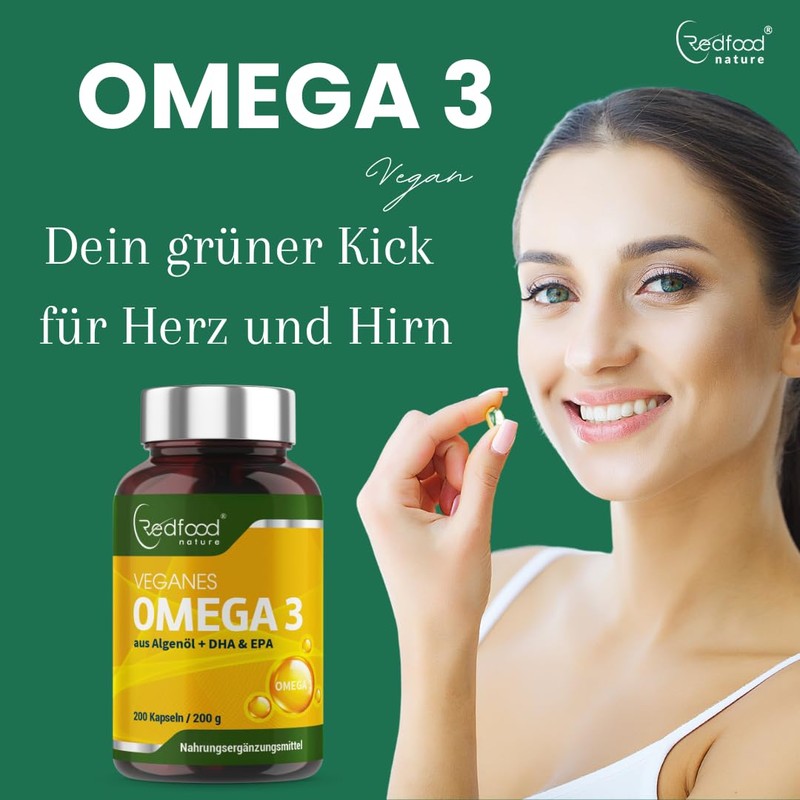 Omega 3 vegan aus Algenöl - 200 Kapseln - Hochdosiert mit hochwertigem EPA und DHA (in Triglycerid-Form) - für Veganer, Laborgeprüft, nachhaltig und von Natur aus schadstoffarm