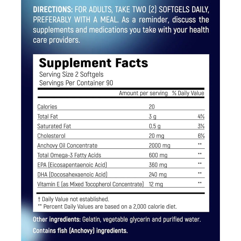 Suplemento premium de aceite de pescado con alto contenido de EPA y DHA. Ultra purificado, sin aditivos ni sabor desagradable. Complemento perfecto para tu salud cardiovascular, cerebral y articular. 🌊💊