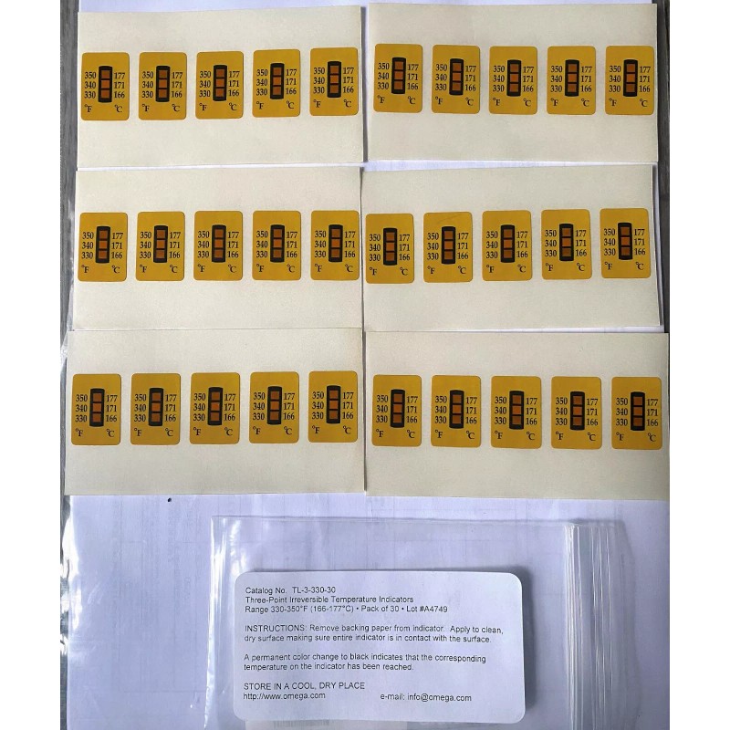 OMEGA 30-Pack Omega 3 Point Irreversible Temp Label (330F-350F / 166C-177C) TL-3-330