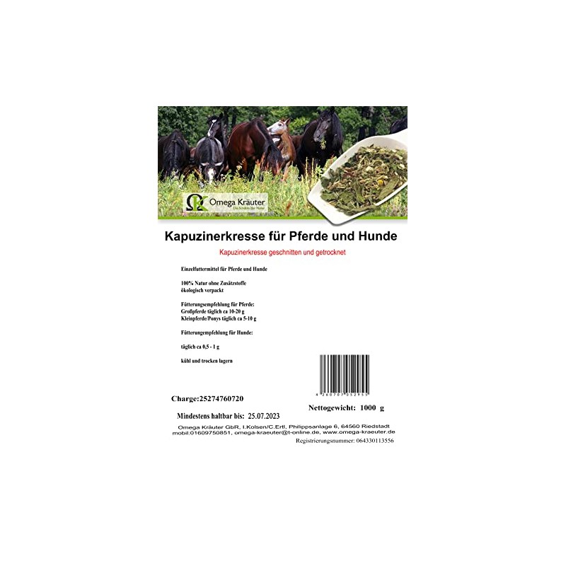 Omega Kräuter Nasturtium for horses and dogs in high quality, free from any additives, 500 g
