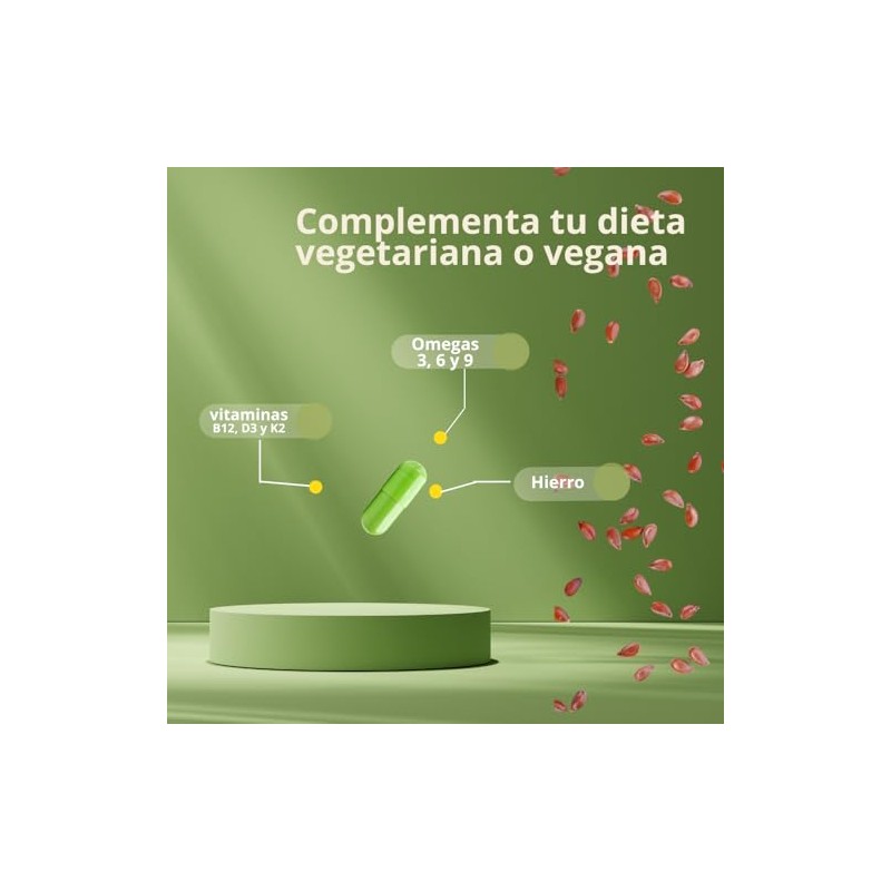Omegas Veganos Vegan - con Omega 3, 6 y 9, Hierro, Vitamina K2 y B12 Alimentacin Vegana y Vegetariana