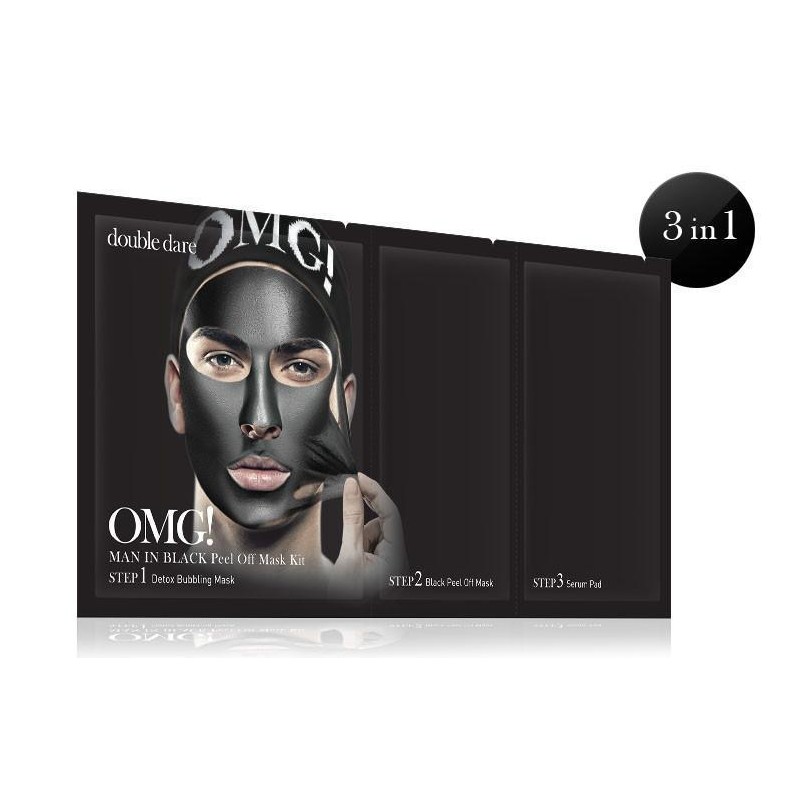 The OMG Man In Black Peel Off Mask Kit is a 3-in-1 skincare collection specifically developed for male skin, which tends to be more oily, thicker and irritated due to shaving.