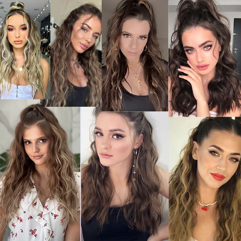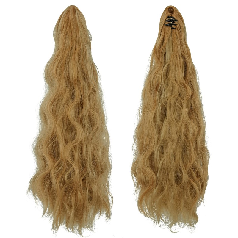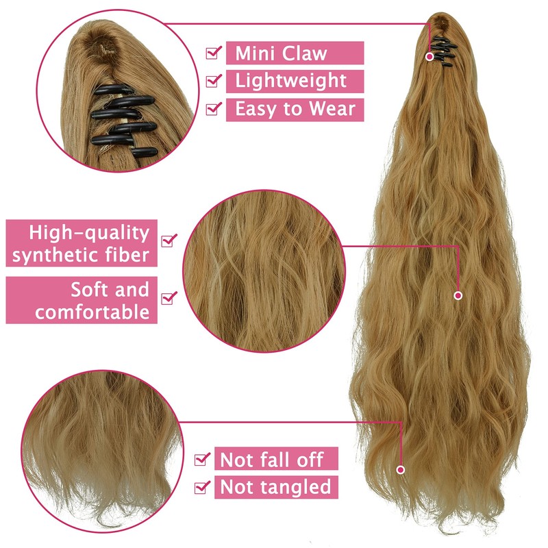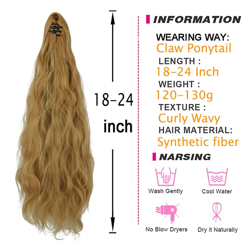 OMGREAT 18 Inch Curly Ponytail Extensions Claw Clip in Ponytail Fluffy Synthetic Natural Soft Wave Pony Tails Extensions Wrap Around Ponytail Hair Pieces for Women (Ash Blonde Mix Ginger)