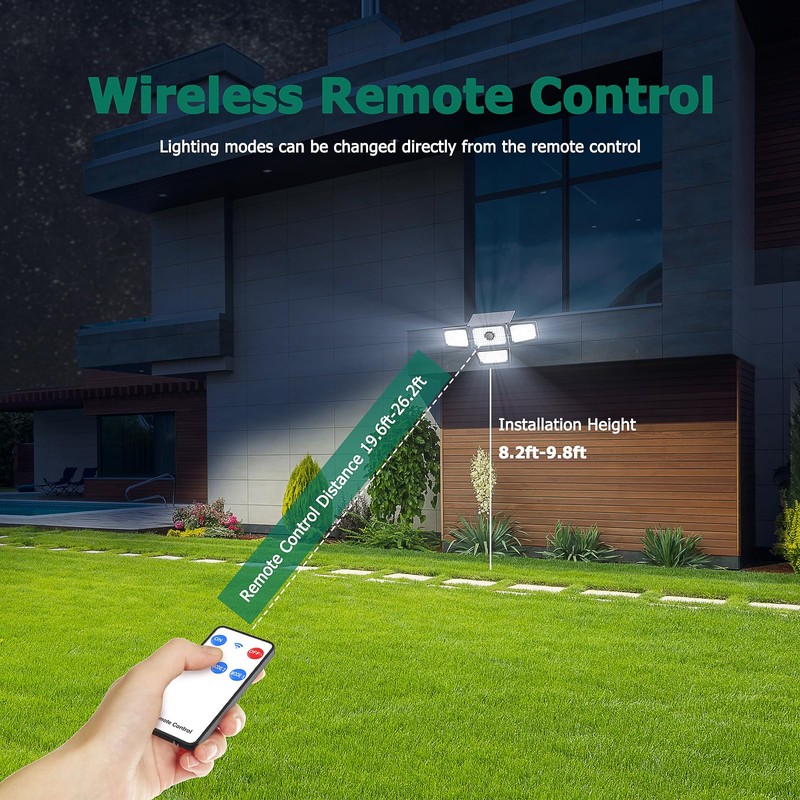 - Motion Sensor & Remote Control The PIR motion sensor lights can detect the distance up to ft away in a range. The outdoor lights solar powered come with a remote control that allows you to easily adjust different modes. When people come, the light turns on at % brightness. The light turns off seconds after people leave. When people come, the light is at % brightness. The light is always on at % brightness seconds after people leave. The light stays on at % brightness at night without infrared induction.