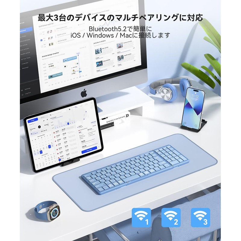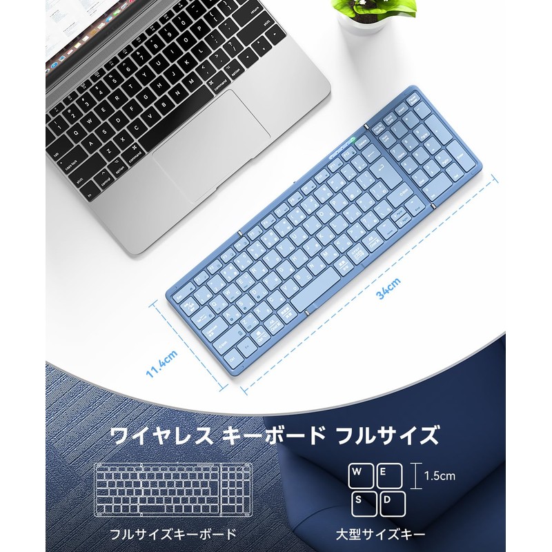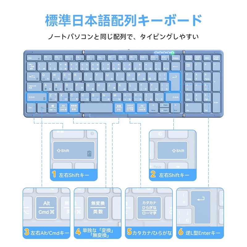 Omikamo Bluetooth Foldable Wireless Keyboard with Japanese Layout (Blue, Nume...