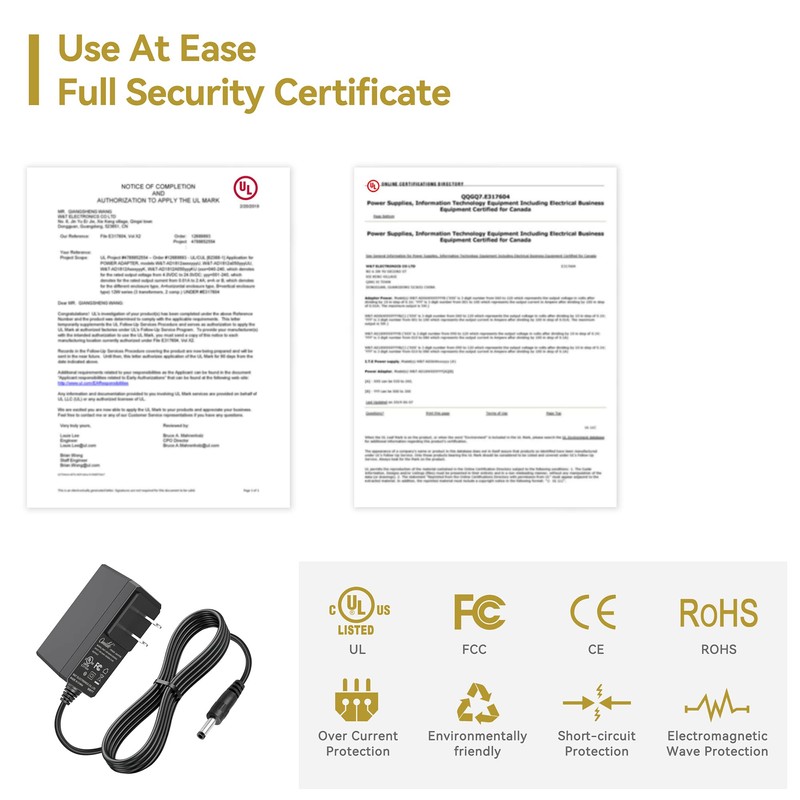 - Omilik Power Adapter Charger are UL CE FCC RoHS Certified for Safety. Provides Over Voltage Protection, Over Current Protection, Short-circuit Protection.