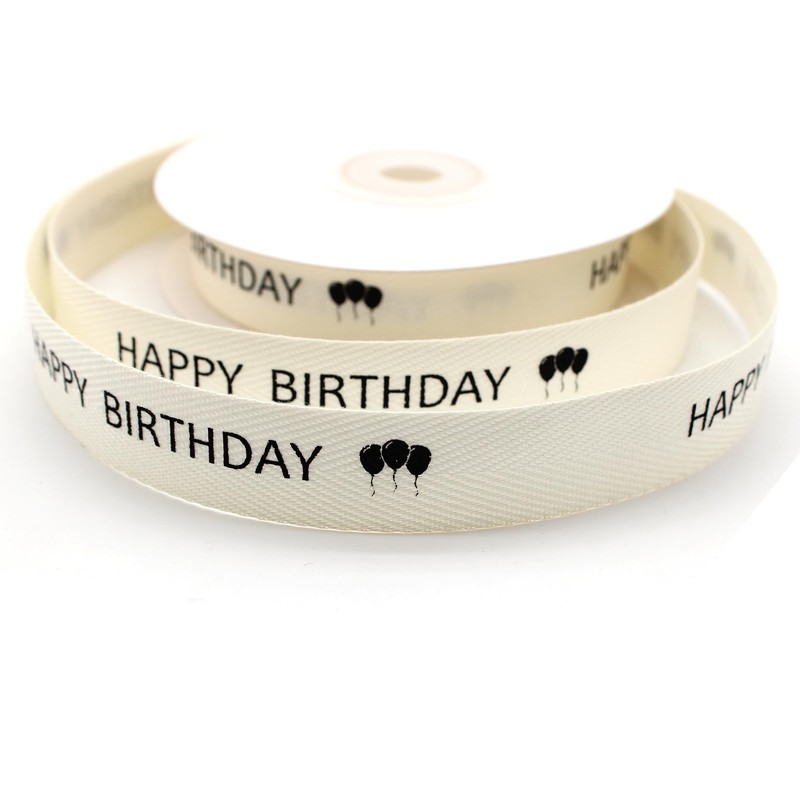 OMISS - Happy Birthday Ribbon with Balloons - Cotton Twill Ribbon, White (HAPPY BIRTHDAY)