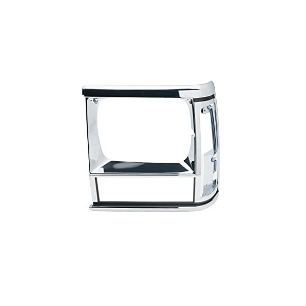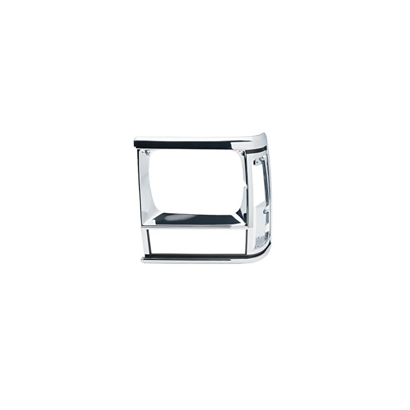 • Flat black and chrome headlight bezel from Omix-ADA fits the left side.