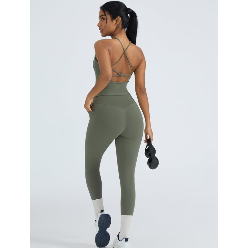 spaghetti strappy sports bra gym sets for women 2 piece sets