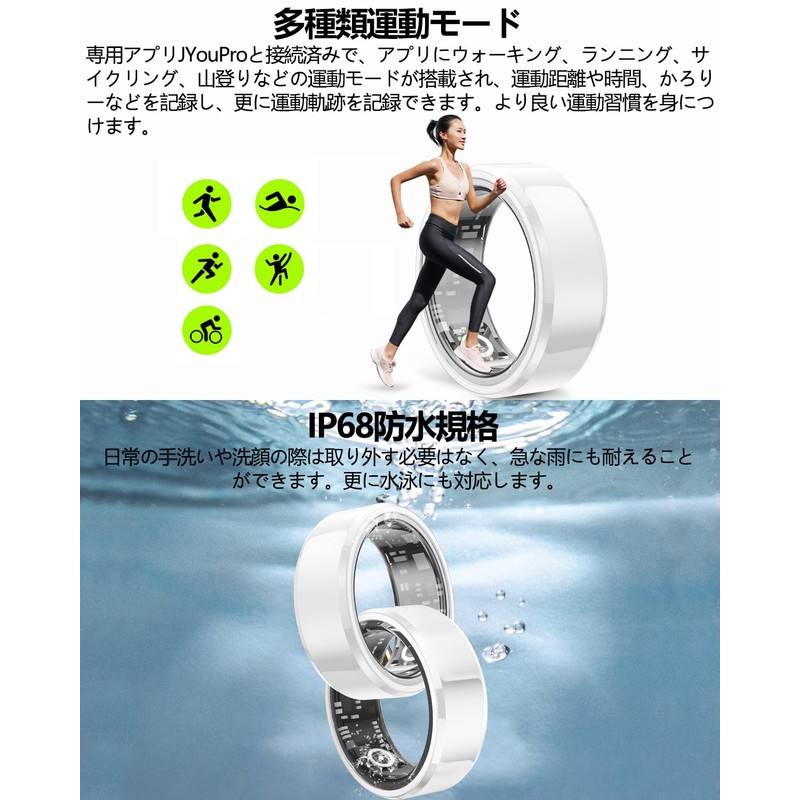 • 【Durable and IP68 Waterproof Level】This smart ring is made of titanium steel, so you can wear it without worrying about any damage during exercise. Durable construction ensures long lasting use. IP68 grade waterproof No need to remove daily hand wash, swimming or sports sweat or other scenarios