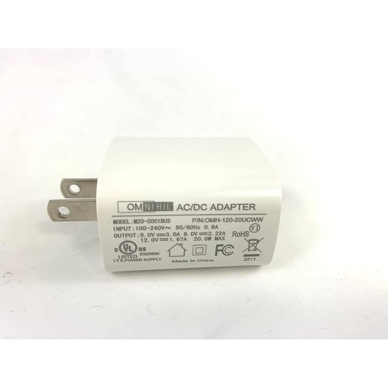 - 20W USB‑C Power Adapter offers fast charging / Output Current: 5 Volts - 3 Amps / 9 Volts - 2.22 Amps / 12 Volts - 1.67 Amps