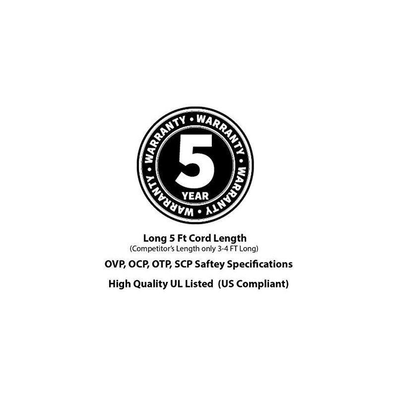 - 5 YEAR FREE REPLACEMENT WARRANTY