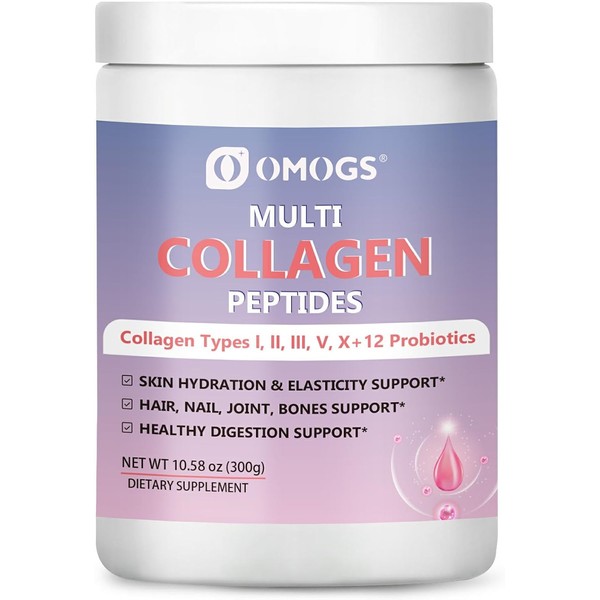 OMOGS Hydrolyzed Collagen Peptide Powder with Prebiotics, Vitamin C & Cranberry Extract,Support Hair, Skin, Nails, Bones, Digestive & Urinary Tract Health, Easy Dissolve, Non-GMO, for Women & Men.