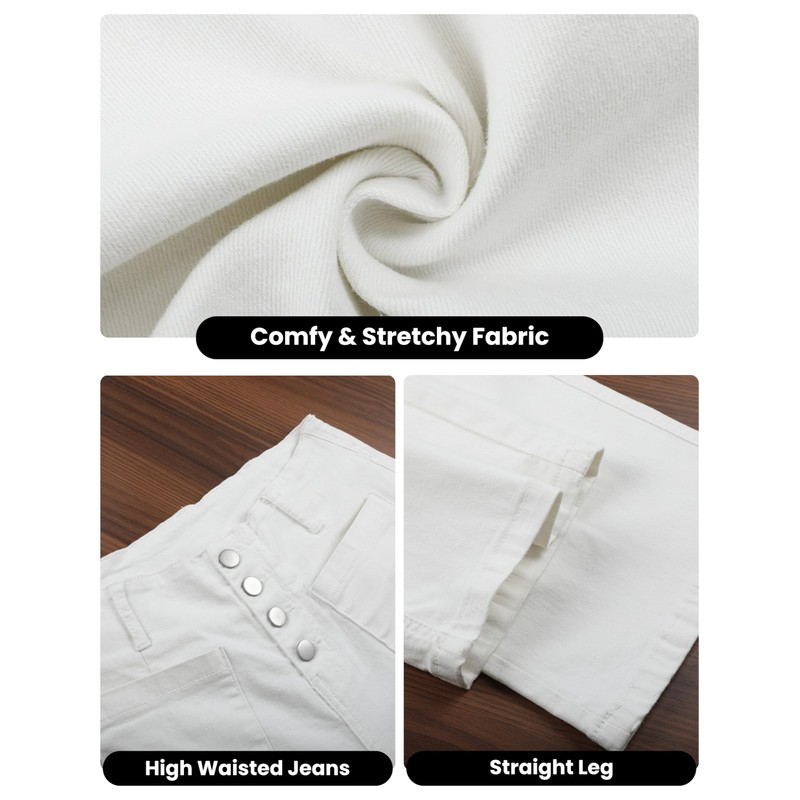 - Omoone womens jeans are made with stretchy denim fabric, which is comfortable and breathable. White jeans women wide leg available in US sizes 2-12 | Inseam: 23.8"-24.4" (60.5-62cm)