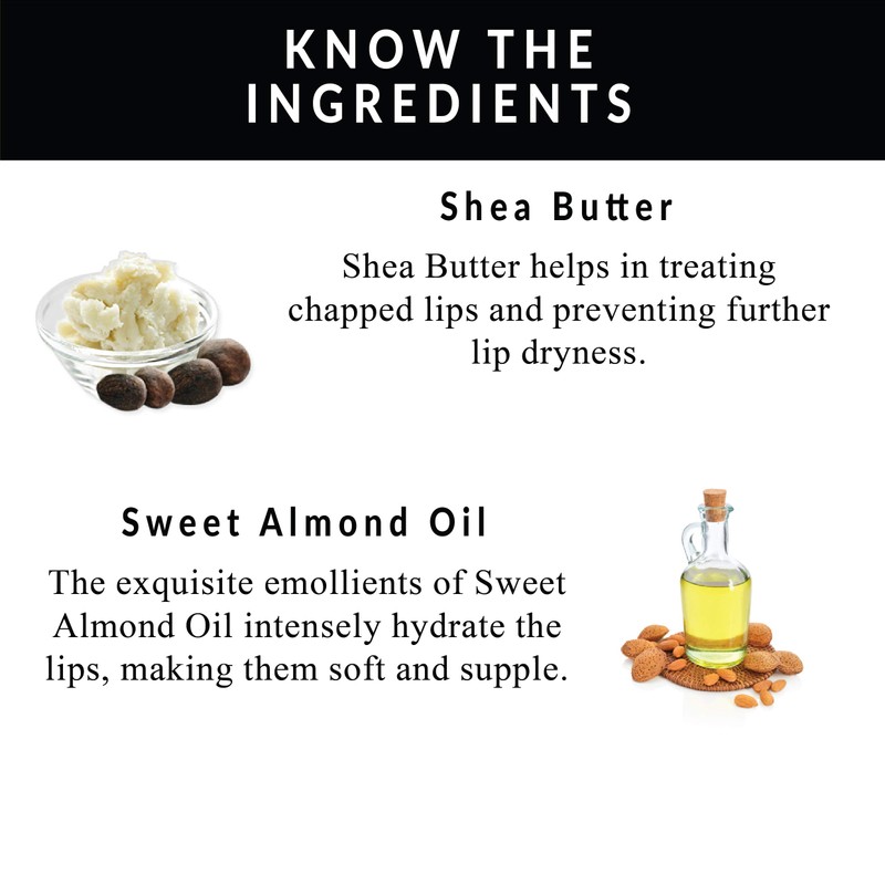 - 100% CERTIFIED ORGANIC INGREDIENTS: Shea Butter for Deeply Moisturized Lips making lips soft; Almond Oil for Intense Nourishment & Treatment that Protects Lips from Harmful effects; Castor Oil for Lip Protection; Banana Extract for Natural Flavor and Aroma; Top Lip balm for Hydration