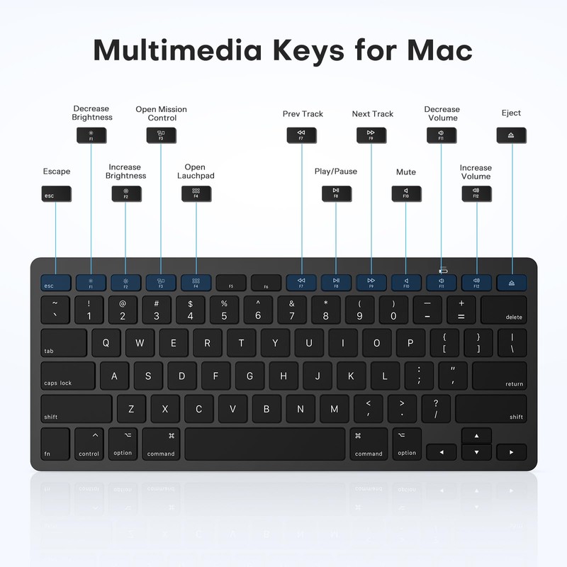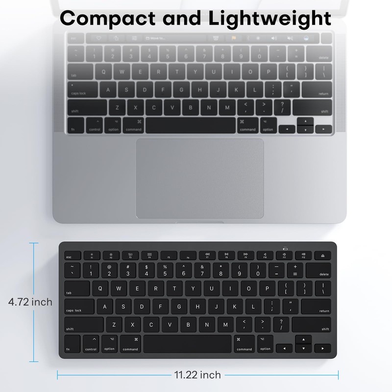 - Ergonomically Friendly Keyboard: With scissor-switch design, this Bluetooth keyboard for mac is targeted at reducing fatigue and makes typing smoother and more comfortable. Further, it is particularly slim and light allowing for easy portability.