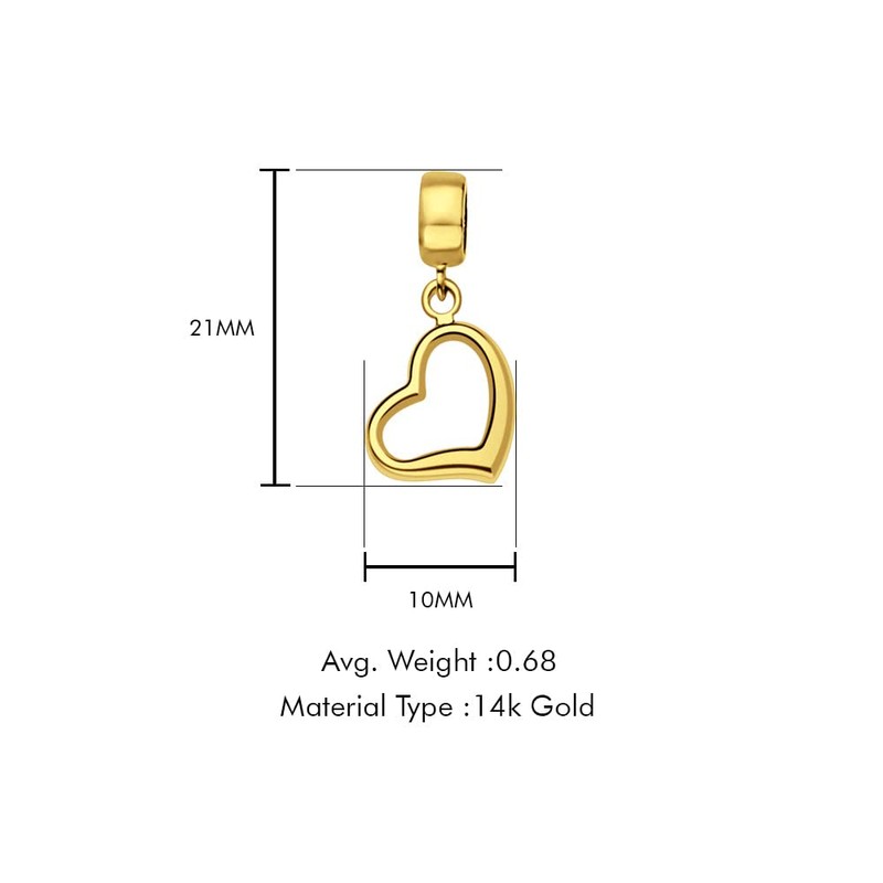 OMRANII 14K Yellow Gold Heart Charm for Mix&Match Pendant 21mmX10mm with 16 Inch 0.9MM Width 14K Yellow Gold Angle Cut Round Rolo Chain Necklace