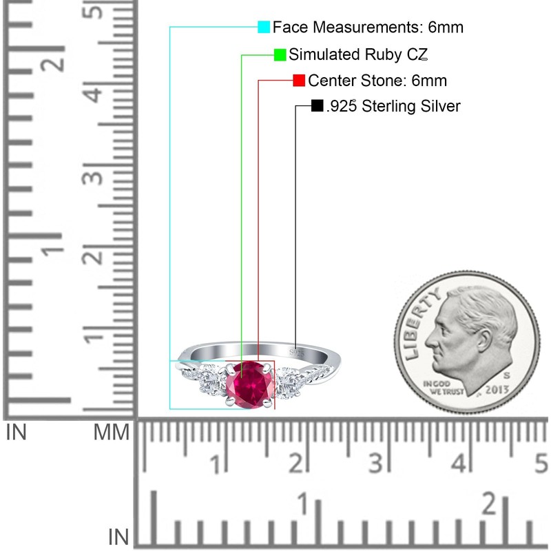 - PERFECT & COMFORT FIT: Ring Measurements: 6mm(0.23") , Center Stone Measurements: 6mm(0.23"). Ring Size: 4 to 10. At the heart of the ring, three dazzling cubic zirconia stones are meticulously set in a round formation, capturing and reflecting light to create a brilliant sparkle. These stones symbolize the past, present, and future, making the ring a perfect choice for engagements and weddings.
