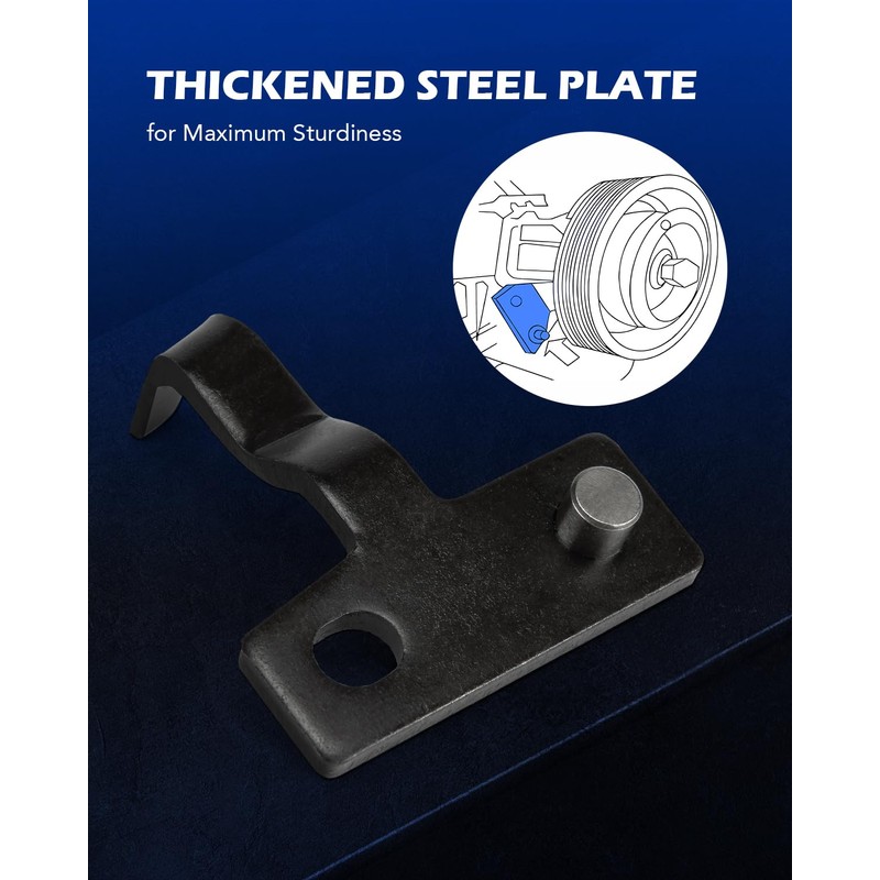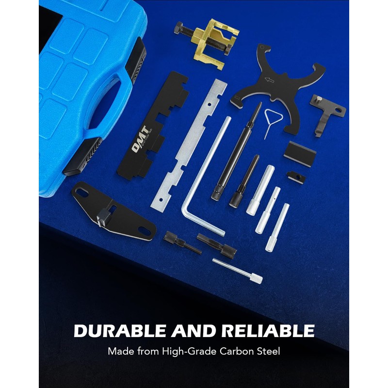 - EASY TO USE: This engine timing belt tool set includes reinforced OEM replacement camshaft and flywheel locking tools, crankshaft pulley alignment tools, a camshaft sprocket puller, a camshaft alignment plate, a camshaft setting bar, as well as all the pins necessary for locking other various parts of your engine.