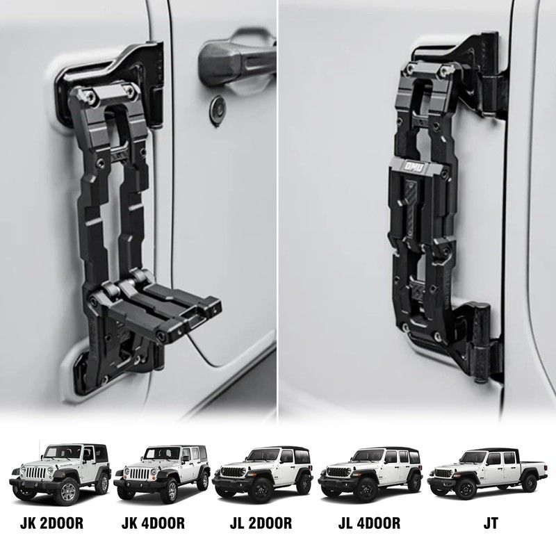 OMU Door Hinge Step Compatible with Jeep Wrangler JK JL JT, Aluminum Door Hinge Folding Foot Pedal Step