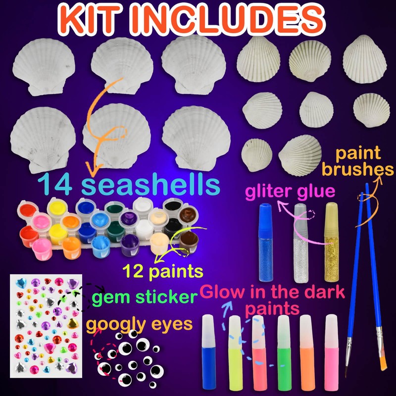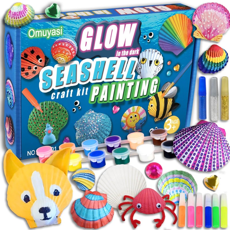 Omuyasi Glow-in-the-Dark Shells Painting Crafts, Craft Set Children from 4 6 8 10 Years, Creative Painting Set DIY Crafts Girls, Shells for Crafts, Children's Birthday Crafts Gifts