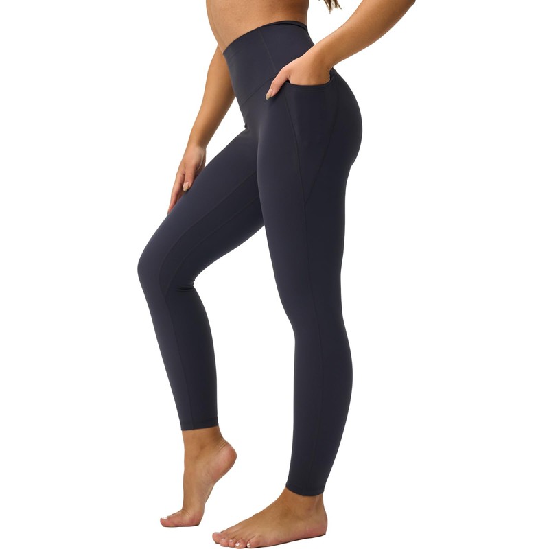 Omwilddo Women's High Waisted Yoga Leisure Leggings 25" Light Compression Butter Smooth Workout Legging Pants Side Pockets Dark Grey M