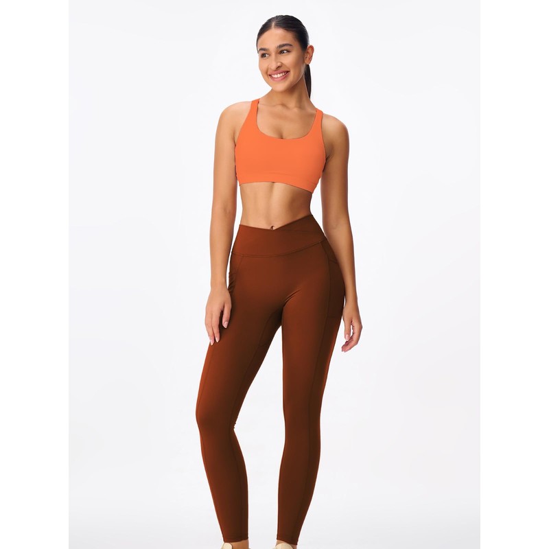 Omwilddo Women's Strappy Sports Bras Light Compression Crop Criss Cross Back Padded Workout Yoga Bra Supportive U Neckline Orange L