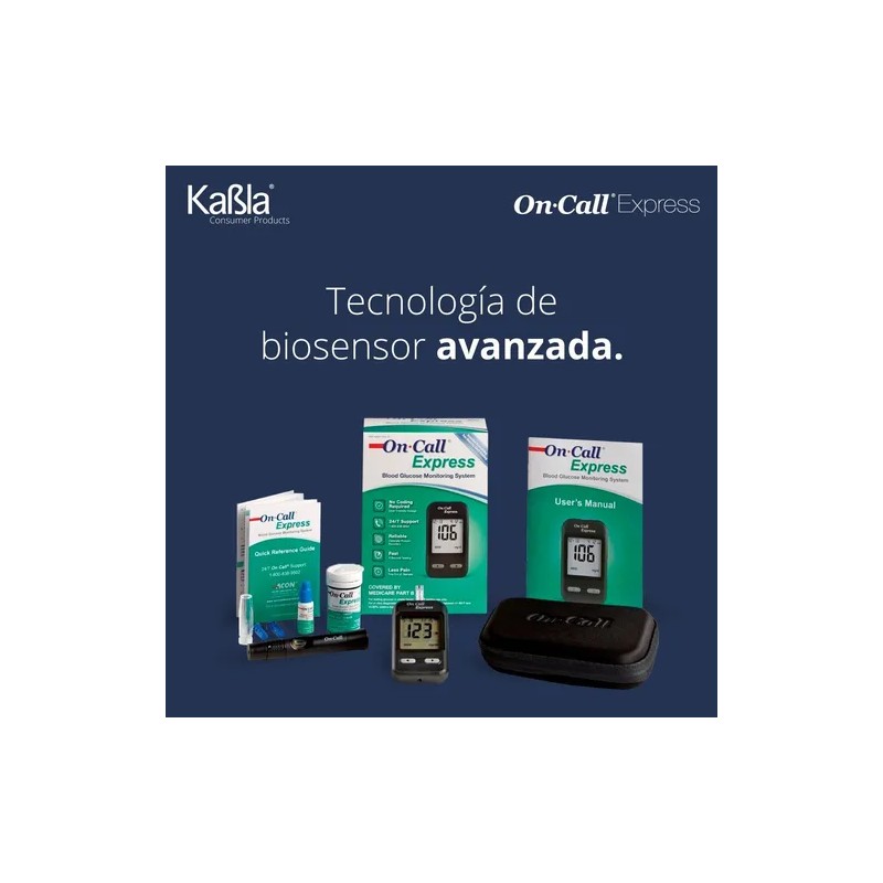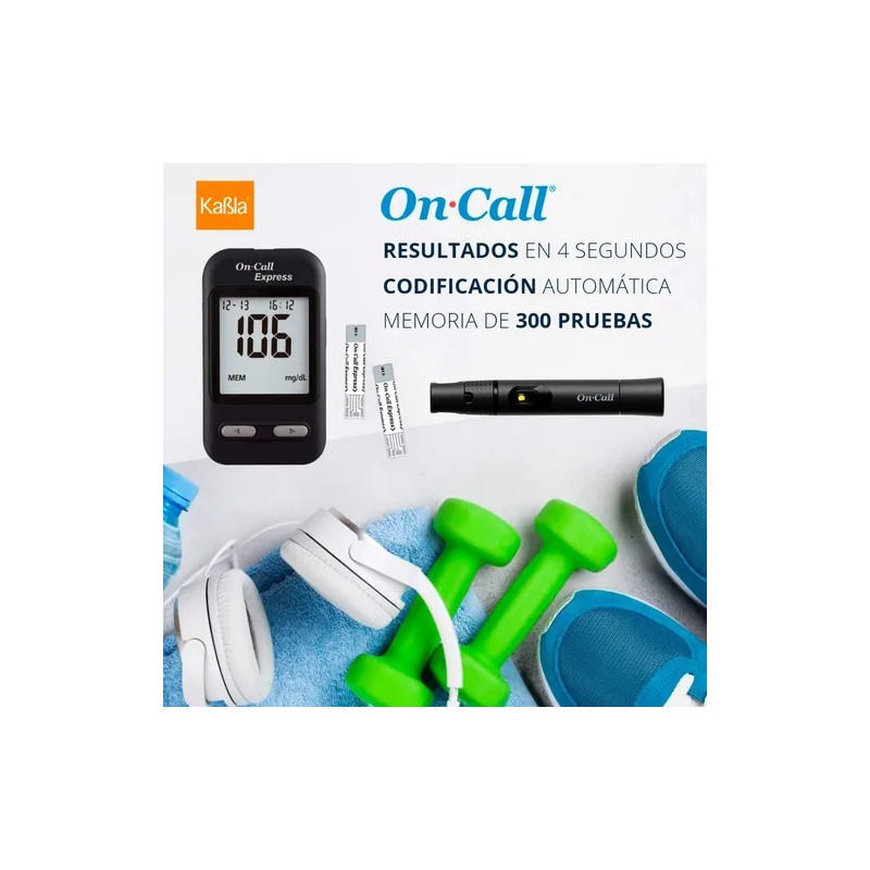 On Call Express, Glucómetro, 100 Tiras, Lancetas, Disparador