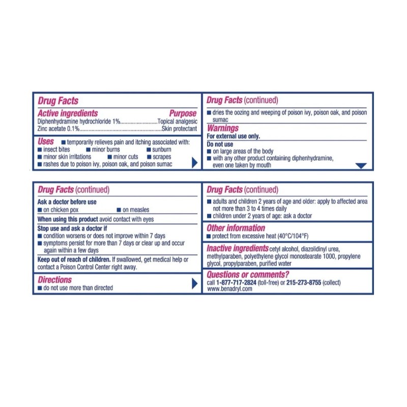 ON CONTAINER BENADRYL ITCH STOPPING CREAM 1oz Exp. 3/27