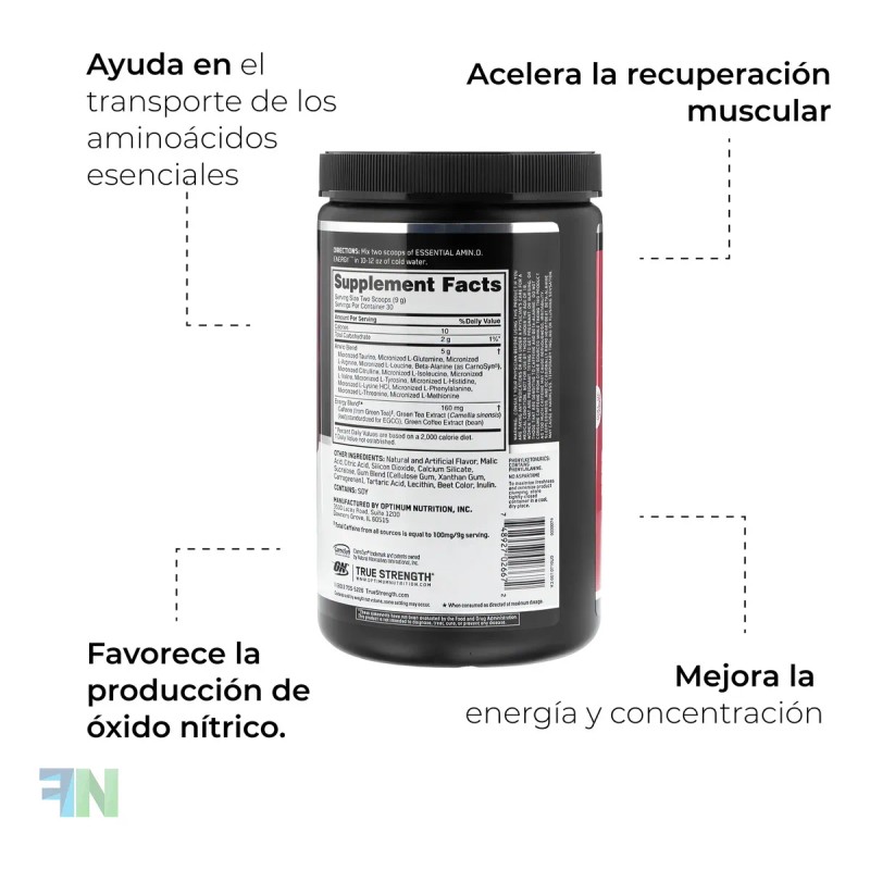 💥🔥 On Essential Amino Energy 10.6oz Frutas Mixtas es tu impulso perfecto para energía, recuperación muscular y concentración mental 🍓🍍🍉. Mezcla única de aminoácidos esenciales + cafeína natural para potenciar tus entrenos y mantenerte activo todo el día ⚡🏋️‍♂️. Sabor frutal delicioso, sin sensación pesada ni después de sabor raro, ideal para antes, durante o después del ejercicio 💪💧. ¡Activa tu energía y recupera rápido con este súper suplemento! 🌟💥