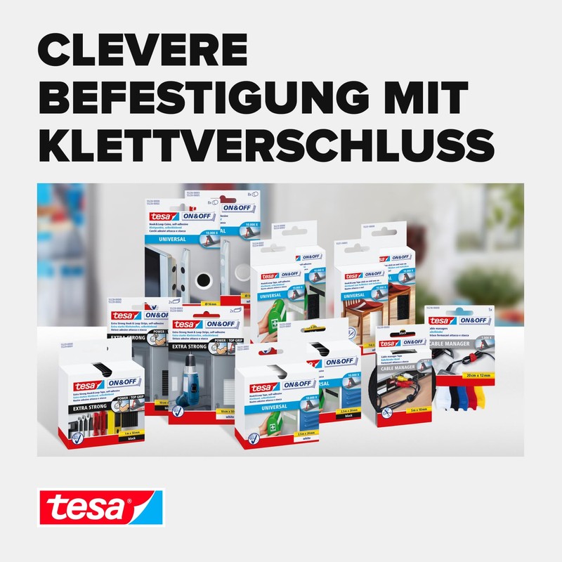 - Velcro tape (office) tesa on and off Velcro tape for sticking on.