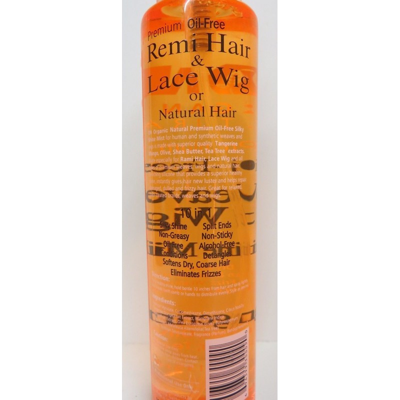 - On Organic Natural Premium Oil-Free Silky Shine Mist for human and synthetic weaves and wigs is made with superior quality Tangerine, Mango, Olive, Shea Butter, Tea Tree extracts.
