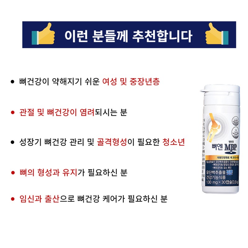 - 기능정보: 유단백추출물 (제2015-16호) 뼈건강에 도움을 줄 수 있음